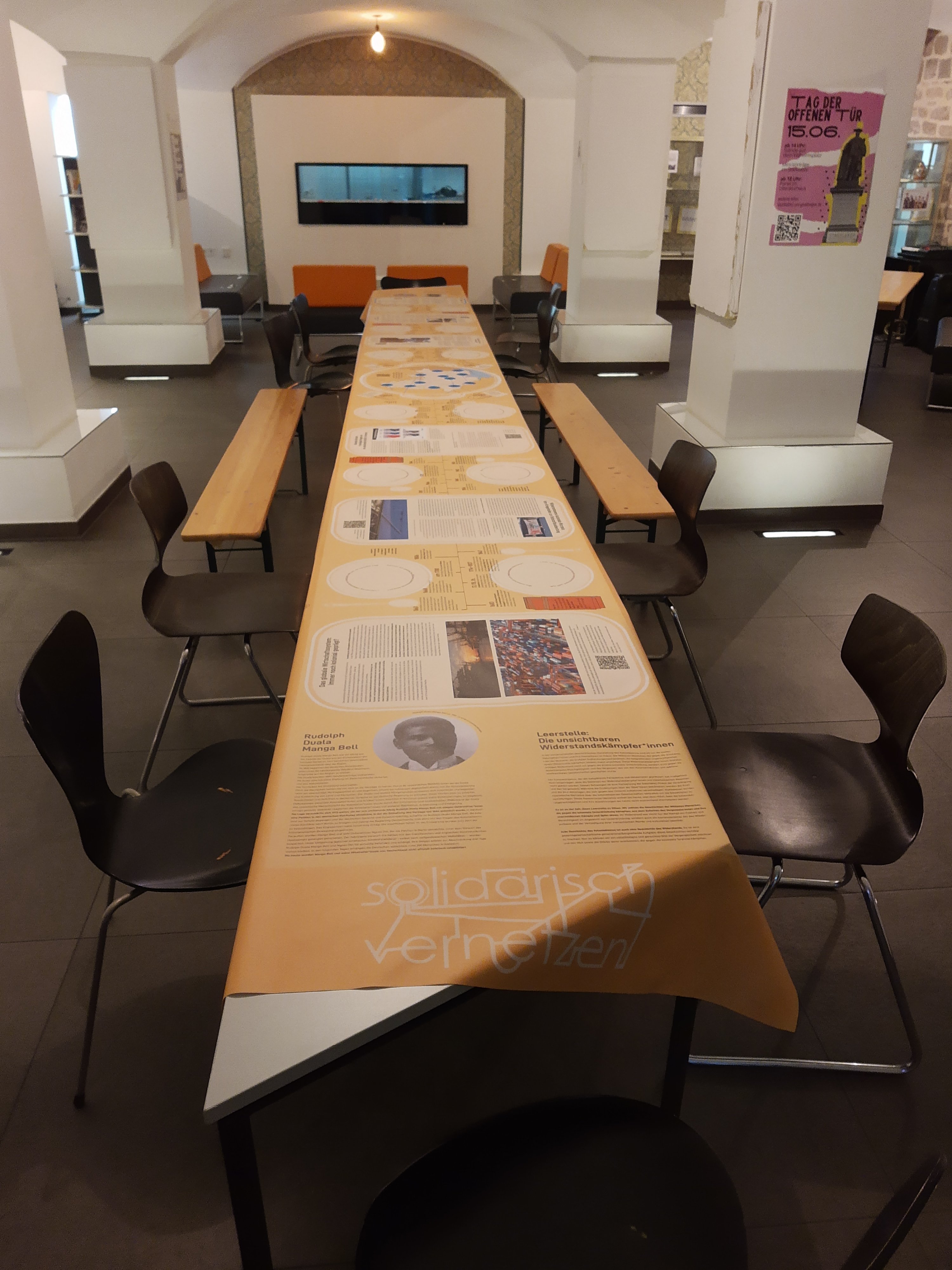 Gemeinsam mit Aktivist*innen aus Göttingen, Hannover, Namibia und dem Netzwerk Dekolnordwest haben wir eine interaktive Ausstellung entwickelt, die Spuren und Auswirkungen des Kolonialismus in Niedersachsen und darüber hinaus sichtbar macht. Auf einer sechs Meter langen Tischdecke lassen sich historische Zusammenhänge, Geschichten von Widerstand und aktuelle Perspektiven von Aktivist*innen anschaulich und interaktiv entdecken.